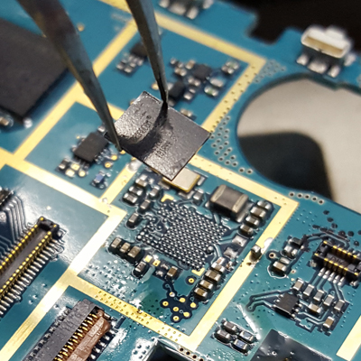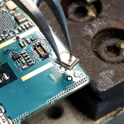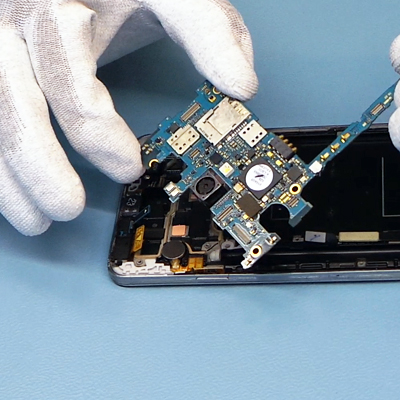 - аппаратный ремонт с полной заменой или восстановлением неисправных запчастей: материнской платы, дисплея, аккумулятора, камеры, микрофона, микросхем, шлейфов и т.д.;